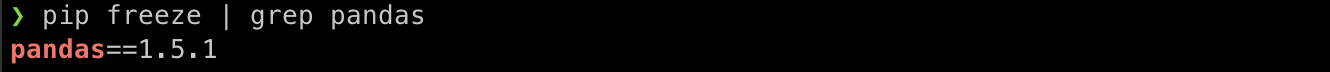 패키지 이름 뒤에 버전 번호를 지정하여 특정 버전의 pandas를 설치할 수도 있습니다.