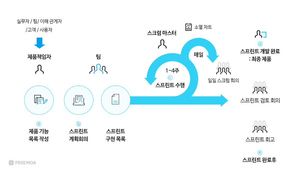 스프린트 검토: 스프린트가 끝나면 개발 팀은 고객 및 이해 관계자에게 작동하는 소프트웨어를 시연합니다. 그들은 피드백을 수집하고 제품 백로그에 필요한 사항을 변경합니다.